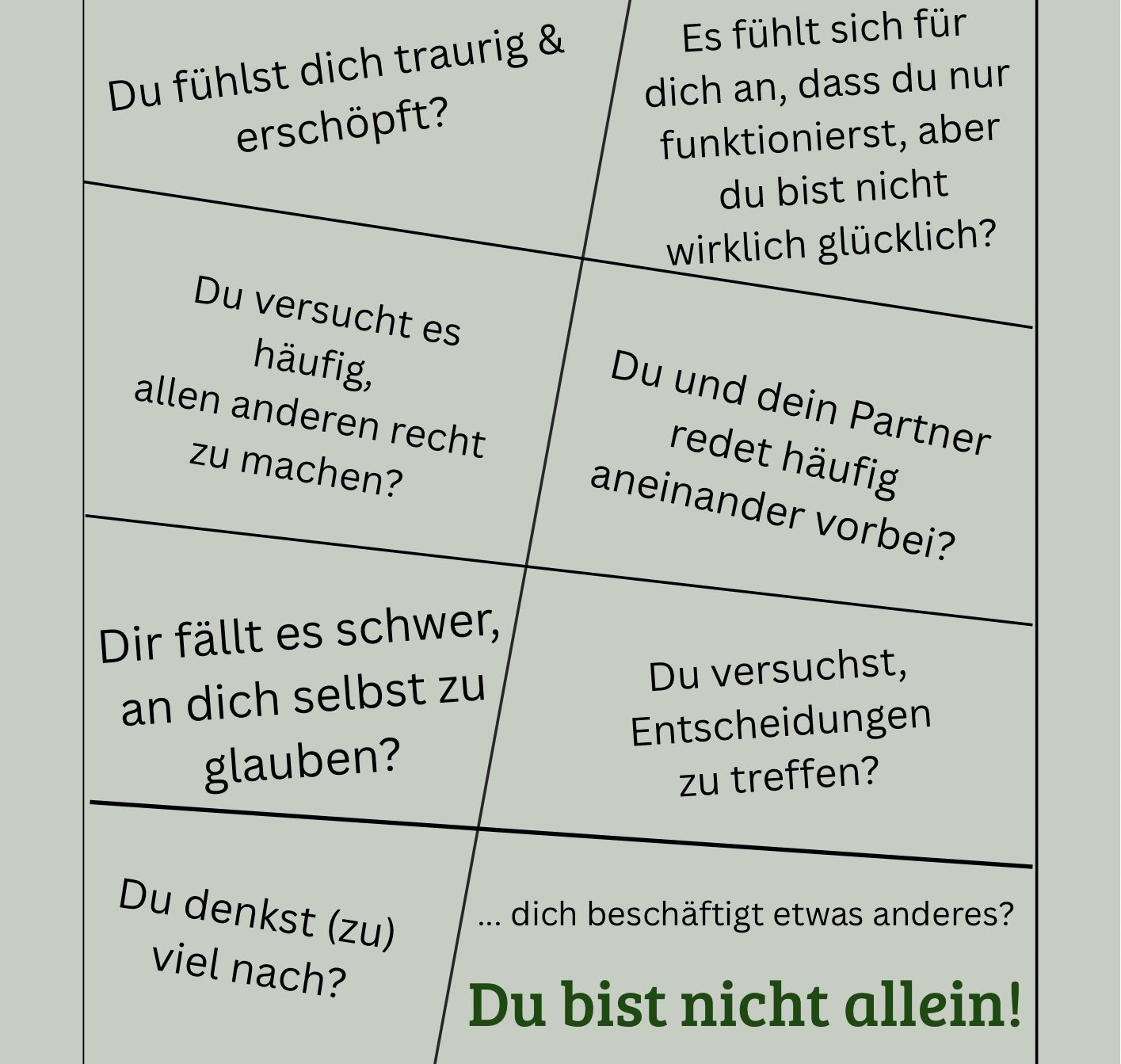 - dich erscchöpft, überfordert oder orientierungslos fühlst